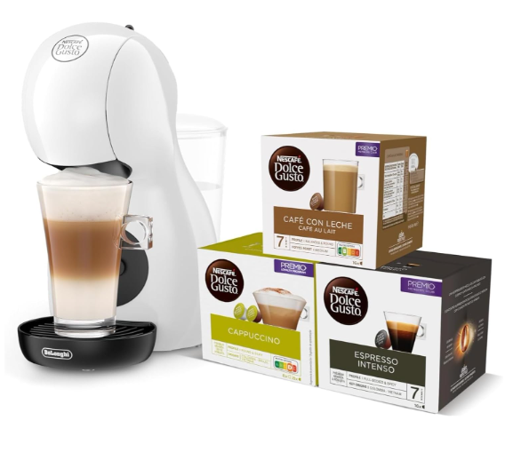 ¿Buscas una cafetera potente, pero con tamaño compacto? Entonces, este modelo de cápsulas de Nescafé Dolce Gusto es perfecto. Sus dimensiones permiten colocarla en cualquier rincón de la cocina, a lo que acompaña un diseño de lo más elegante. Eso sí, tiene 15 bares de presión y sistema Thermoblock para calentar el dispositivo en tiempo récord. Y para que no tardes en disfrutar del mejor café, ¡incluye tres packs de cápsulas de regalo! ¿Se puede pedir más?