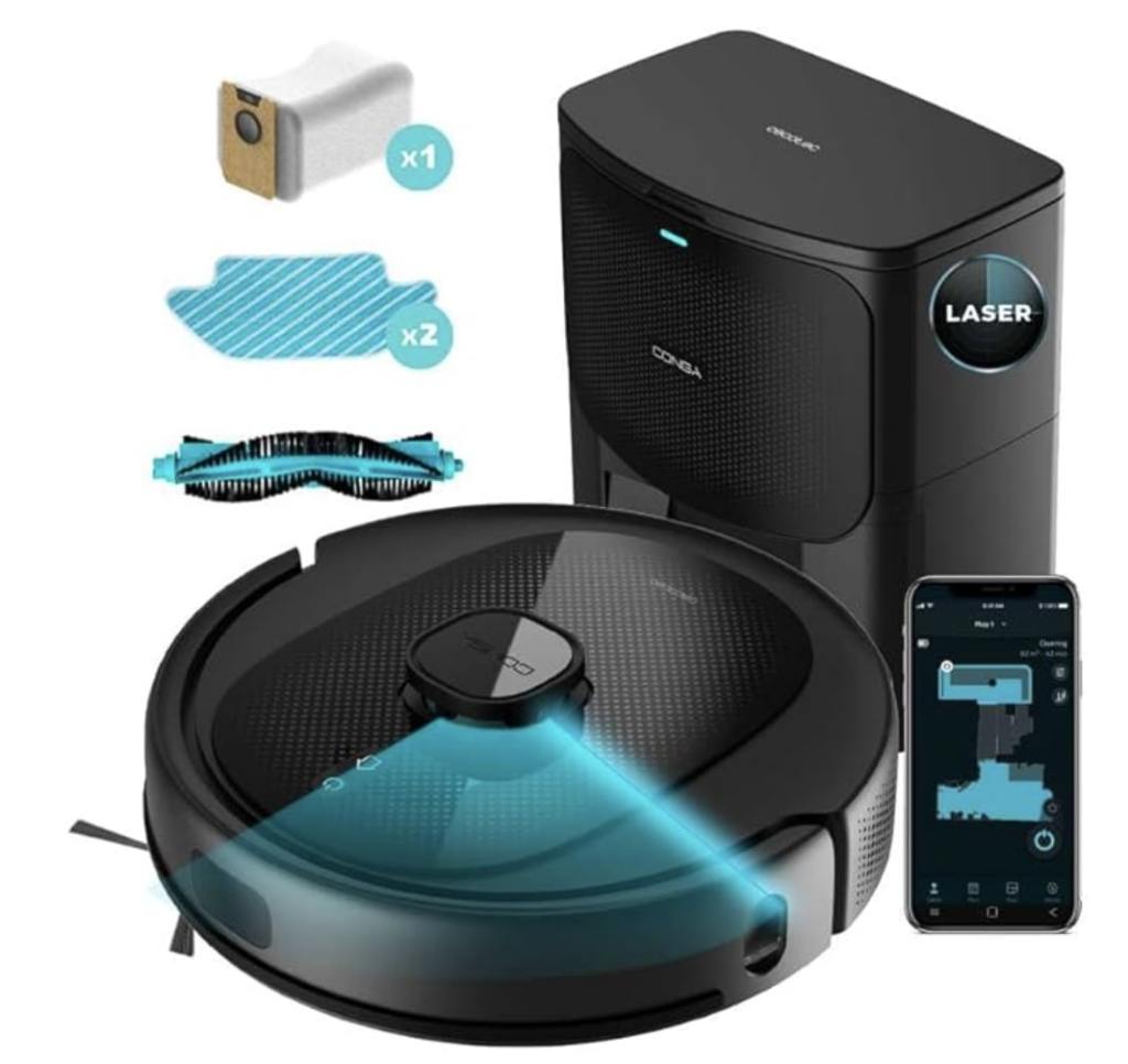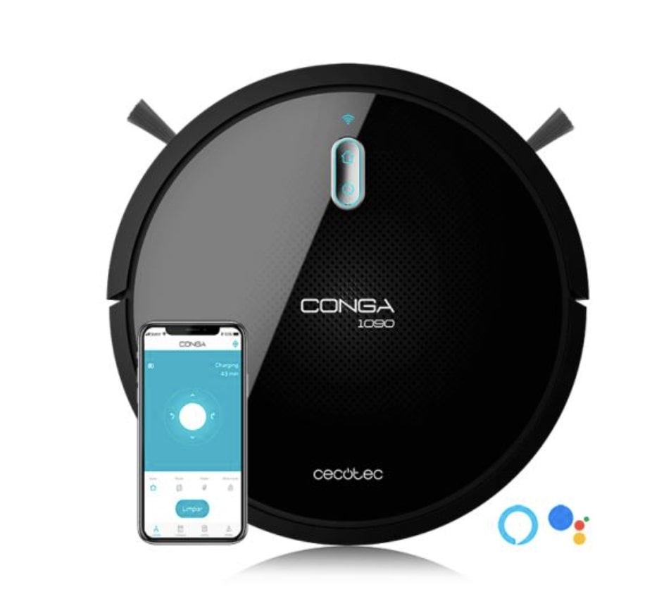 Hacemos hueco en la lista para este robot aspirador Conga 1090 de la marca Cecotec que nos ofrece un 4 en 1 que no solo aspira sino que también barre, pasa la mopa y friega. Cuenta con un pequeño depósito de agua de 300 ml con el que podrás humedecer el suelo por goteo para eliminar manchas más incrustadas. En cuanto a potencia de succión es bastante eficiente y puede acabar incluso con las suciedades más incrustadas. Tiene un cepillo de goma especial que evita enredos en alfombras y otro rotativo con dos rodillos de cerdas y silicona que se adapta a todas las superficies.