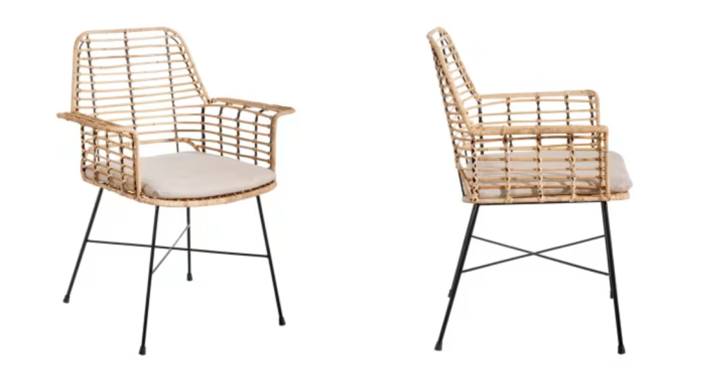 Silla con brazos de metal y fibra natural beige (210,00€, 175,00€)