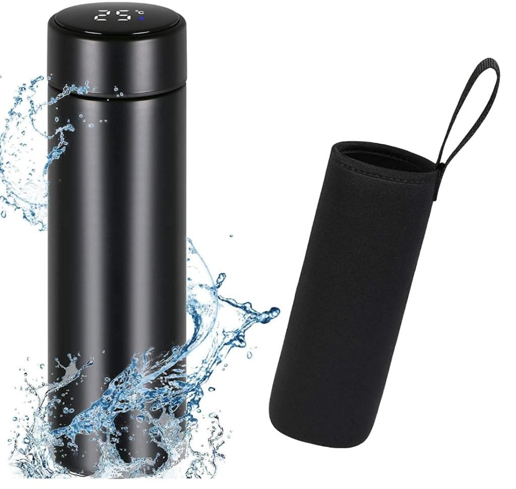 Entre lo más vendido también ha estado durante mucho tiempo el termo Flintronic que cuenta con decenas de valoraciones positivas en Amazon. De este diseño vamos a destacar su pantalla LED en la que se muestra la temperatura interna y su filtro para café o té. En cuanto a capacidad, puede contener hasta medio litro de líquido, manteniéndolos calientes por 6 horas y frías por 5 horas.
