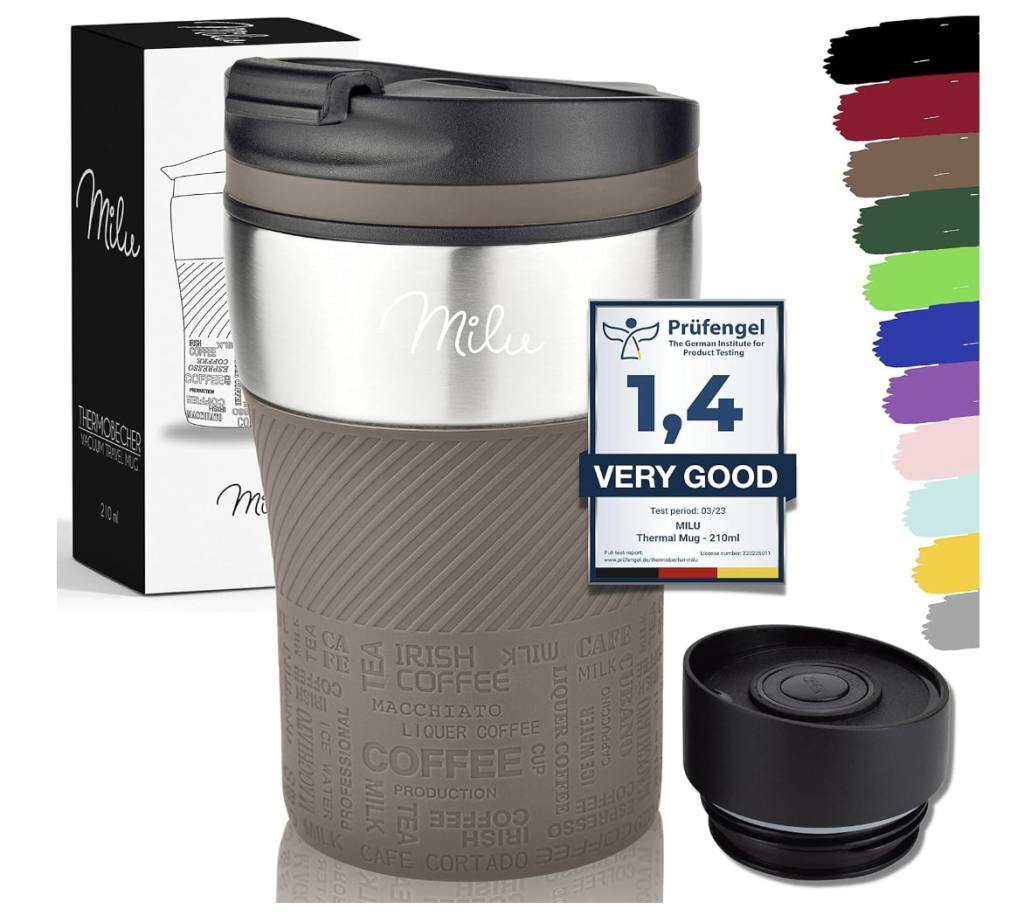 Su uso con una sola mano facilita la experiencia y le da un plus adicional. Incluye una segunda tapa con cierre de clic con la que se evitan fugas. No consigue mantener la temperatura durante un período prolongado de tiempo, pero ofrece más de 2 horas de conservación. El diseño es muy cómodo y es una opción muy práctica a pesar de su breve capacidad de retención térmica. El precio es muy atractivo y se hace perfecto como regalo para esa persona adicta al café.