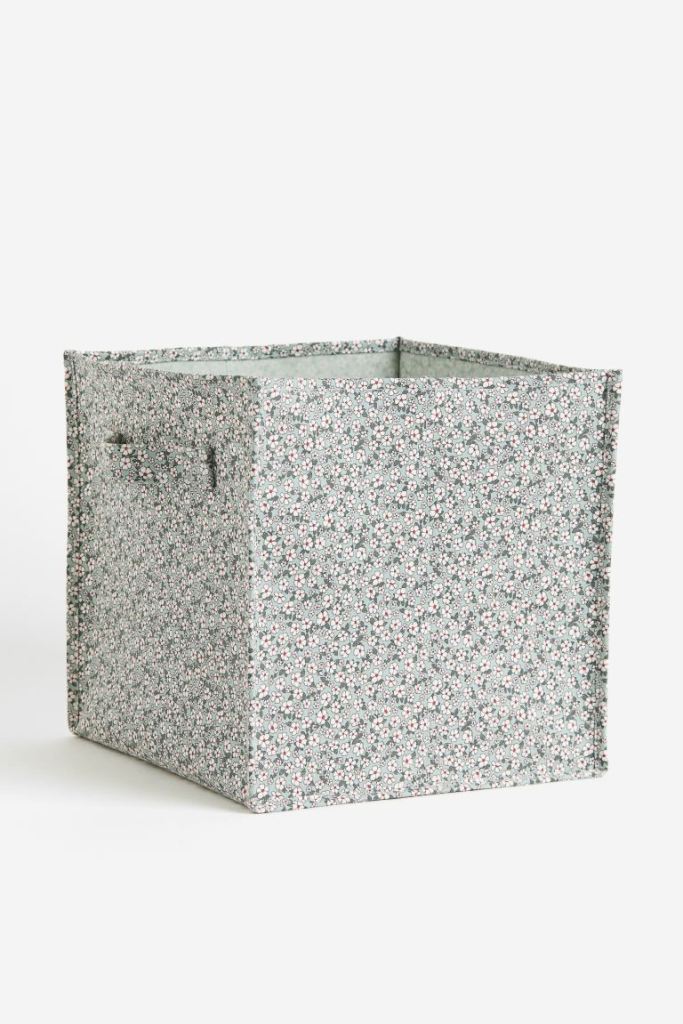 Sabemos que organizadores colgantes como el que te hemos enseñado antes son súper prácticos, pero sí es verdad que muchas personas son reacias a ellos porque no ocultan las prendas como sí haría un cajón. Es cierto que esto puede dar la sensación de estar más desordenado, pero por ello os traemos este tipo de cesta de almacenaje que decorarán tu armario y serán súper funcionales para mantener el orden. En este caso, cuenta con un estampado de flores ideal, y está súper barato en la nueva colección de H&M (9,99 euros).