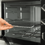 - Limpieza regular: después de cada uso, limpia el interior del horno con un paño húmedo para eliminar cualquier residuo de alimentos. Además, limpia las bandejas y rejillas con agua caliente y jabón suave para evitar la acumulación de grasa y residuos.