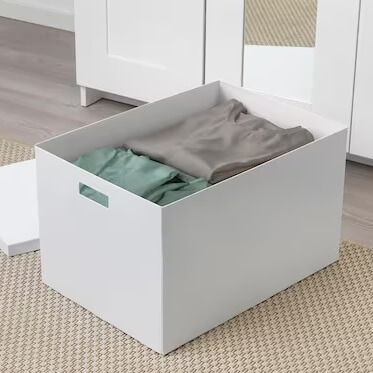 Una solución simple pero efectiva para el almacenaje. Estas cajas, disponibles en dimensiones de 35x50x30 cm, son ideales para colocar en estantes altos o rincones desaprovechados. Con asas integradas para facilitar su manipulación, estas cajas son una excelente opción para mantener tus pertenencias protegidas y organizadas.