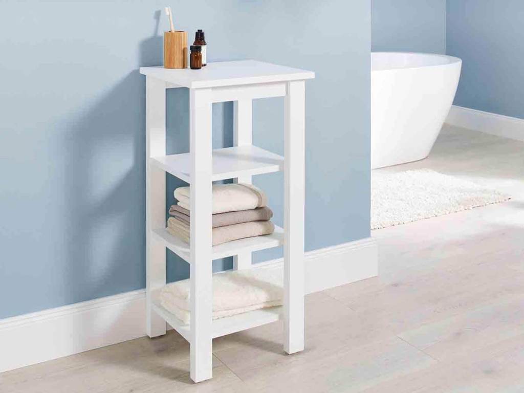 He aquí este mueble de Lidl al que nos referíamos en el titular. Como puedes apreciar, se ajusta perfectamente a la descripción. En primer lugar, porque es compacto, por lo que es ideal para baños incluso de pocas dimensiones. Al ser más alto que ancho, es perfecto para aprovechar al máximo el espacio de esta estancia de la casa. En concreto, mide 96 cm de largo, 28 cm de fondo y 32,2 cm de ancho. Así que si, en cualquier esquina es fácil de colocar ya que no ocupa mucho. Además es práctico para mantener el orden. ¿Las razones? Que cuenta con distintos compartimentos.