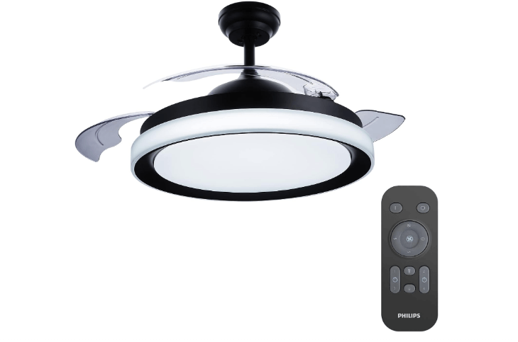 Para abrir la lista contamos con el ventilador de techo de la marca Philips que recibe el nombre de Atlas dentro de su catálogo. Se trata de un ventilador de techo retráctil con luz que combina luz personalizable y una brisa agradable, controlables mediante su mando a distancia.