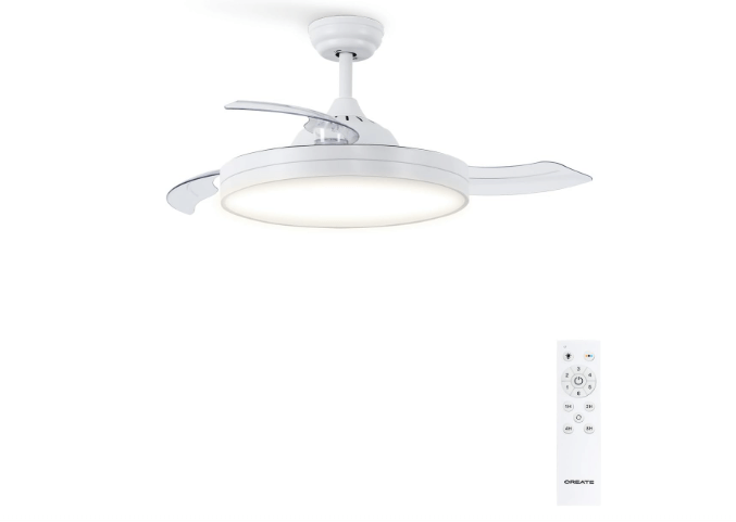 En Create podemos encontrar otros ventiladores de techo que pueden ser una magnífica opción, como este Wind Clear que presenta un diseño muy actual y cuenta con hasta seis velocidades diferentes. Incorpora un mando a distancia con el cual vamos a poder programar el temporizador entre 1-8 horas.