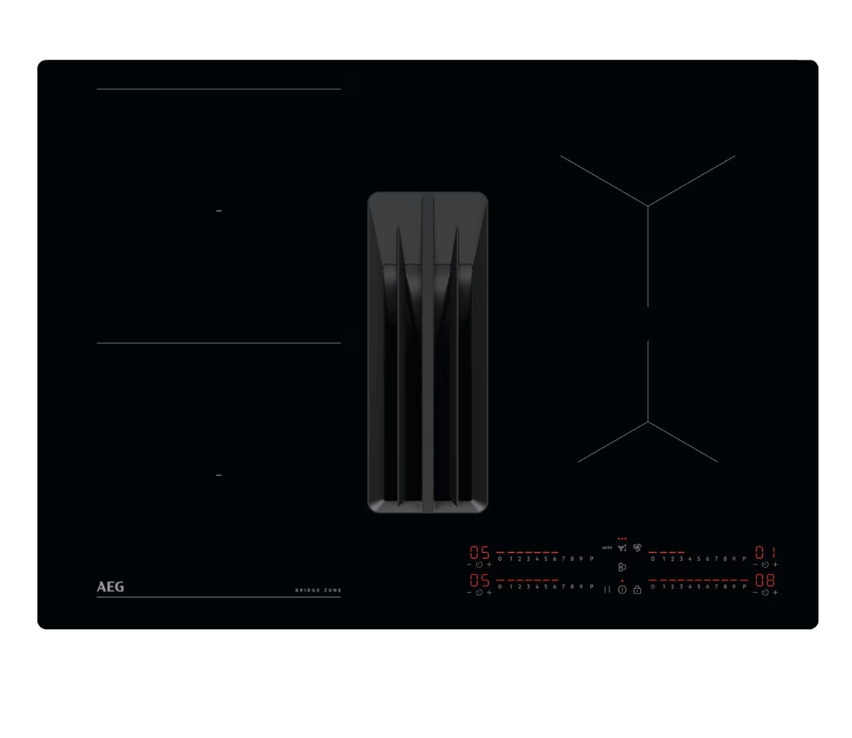En el mercado podemos encontrar esta placa de inducción con campana integrada AEG TCH74B01FB de 68 cm que ofrece libertad total en la cocina. Nos ha gustado su función Bridge que combina dos zonas de cocción en una mayor, ideal para utensilios grandes.