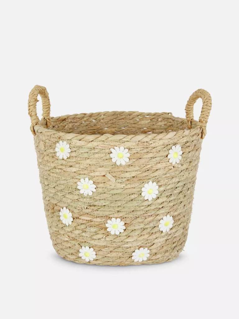 Para darle un toque más romántico la casa, esta cesta de rafia decorada con margaritas nos parece ideal. Ya la imaginamos combinada con la anterior propuesta de Primark, haciendo así que estas sean objetos decorativos mientras nos ayudan a mantener el orden. Por ejemplo, se puede emplear para guardar los cojines de la terraza para darle un toque más natural a la estancia. Y también está tirada de precio ( 9 euros).
