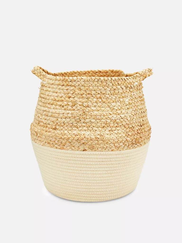 Y como última propuesta, una cesa de rafia que cambia un poco en silueta. Las otras eran más rectas, mientras que esta se ensancha a la mitad y mezcla dos tipos de materiales. Eso sí, siempre en tonos tierra y neutros para que conseguir toque rústico y natural mientras ordenamos la terraza, el dormitorio o incluso la entrada de la casa. Y también está tirada de precio (10 euros).