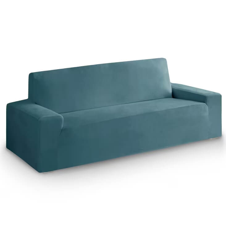 En Maisons du Monde también tienen fundas de sofá de talla única, esta en un color azul con acabado en terciopelo nos encanta para crear un lugar acogedor y vibrante al mismo tiempo. El precio está rebajado a 39,95 euros.