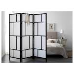 Hablamos del modelo Risör de Ikea, un biombo en blanco o negro elaborado en madera maciza con unas medidas importantes (216x185 cm), que le hacen un candidato perfecto para colocarlo en una habitación grande de tu casa, como el salón o el dormitorio principal.