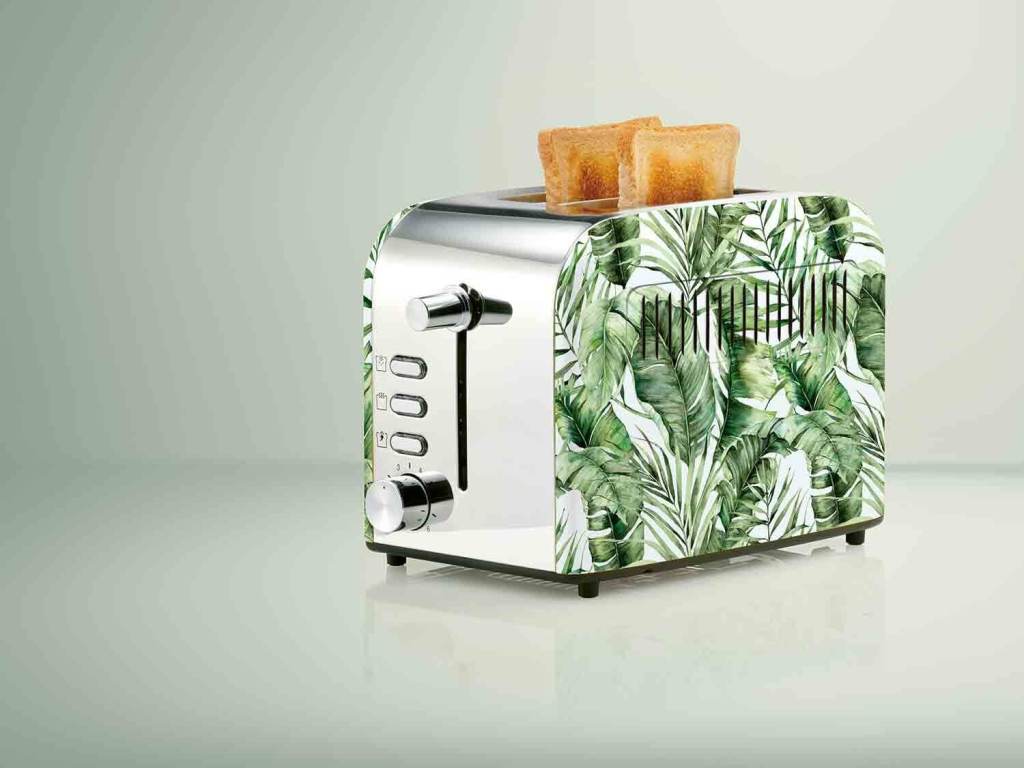 Aunque esta es una de las tostadoras, también hay otras opciones baratas con las que poder renovar la decoración de la cocina. Es el caso de esta opción con estampado tropical, donde las hojas verdes son las completas protagonistas. Este tostador de doble ranura de 920 W con seis niveles de tostado tiene un diseño moderno que, seguro, llamara la atención de cualquiera (29,99 euros).