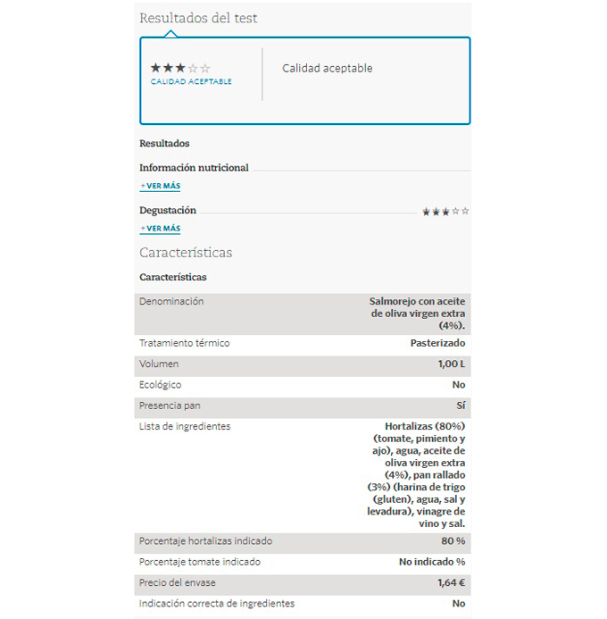 CASA MAS Salmorejo: valoración OCU
