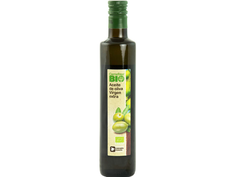 Este envase de medio litro está de venta en Carrefour y está clasificado como aceite ecológico. Obtiene una puntuación de 79 sobre 100, destacando por su correcta acidez, en su autenticidad y en la calidad y cuidado de la aceituna con la que está hecha. Una opción que tiene un precio de 3,29 euros el envase.