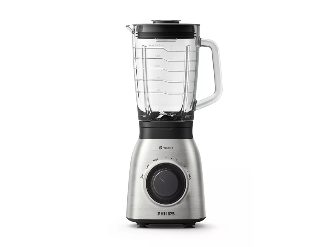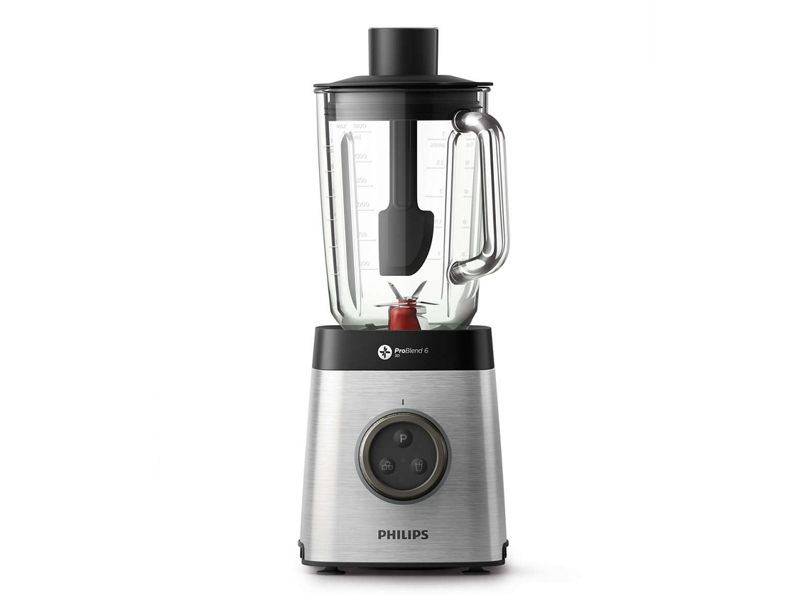 El tercer puesto se lo ha ganado la batidora Philips HR2093 avance. Un modelo muy estable y fácil de limpiar, ya que podrás meterla en el lavavajillas. Tiene un programa específico para picar hielo y es una buena preparadora de smoothies, aunque necesita más tiempo que otros modelos para prepararlos. Además, es la más ruidosa del análisis con 94,3 dB y algo difícil de utilizar para personas zurdas. Tiene un precio de compra de entre 110 euros y 145, unas dimensiones (alto x ancho x profundo) de 41 x 20 x 18 cm, una longitud de cable de 97 cm y un peso de 3.900 gramos.