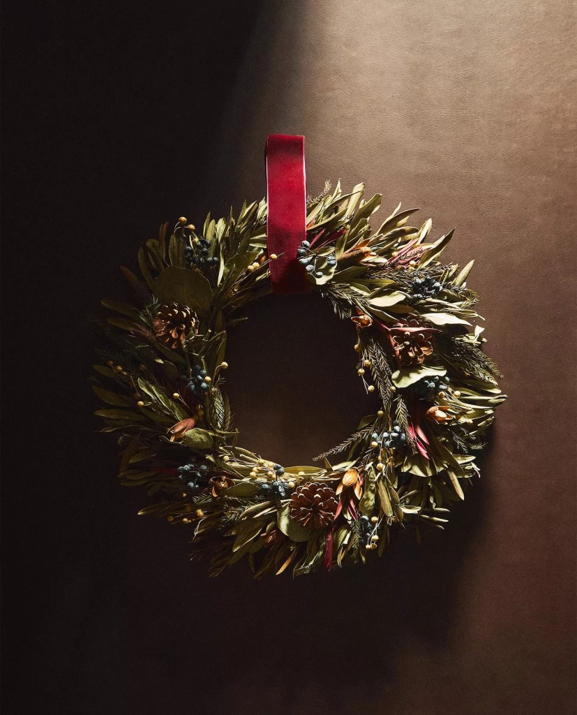 Este tipo de decoración, que tradicionalmente se coloca en la puerta de entrada, es una manera sutil pero impactante de recibir a los invitados. La corona de Zara Home combina a la perfección elementos clásicos como ramas verdes y frutos rojos, creando un equilibrio entre lo atemporal y lo contemporáneo. La cinta aterciopelada en tonos rojos añade un toque de sofisticación, mientras que las ramas aportan frescura y conexión con la naturaleza.