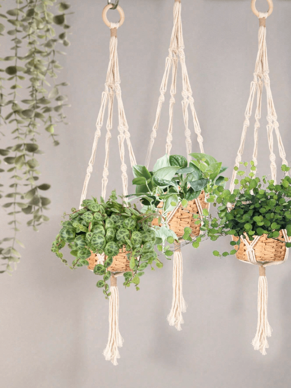 Las plantas también pueden ocupar un espacio en el aire de las estancias. Esta pieza de Shein es una cesta colgante, de estilo macramé, tejida a mano que recuerda un estilo bohemio por los tonos tierra. El precio es 2,25 euros.
