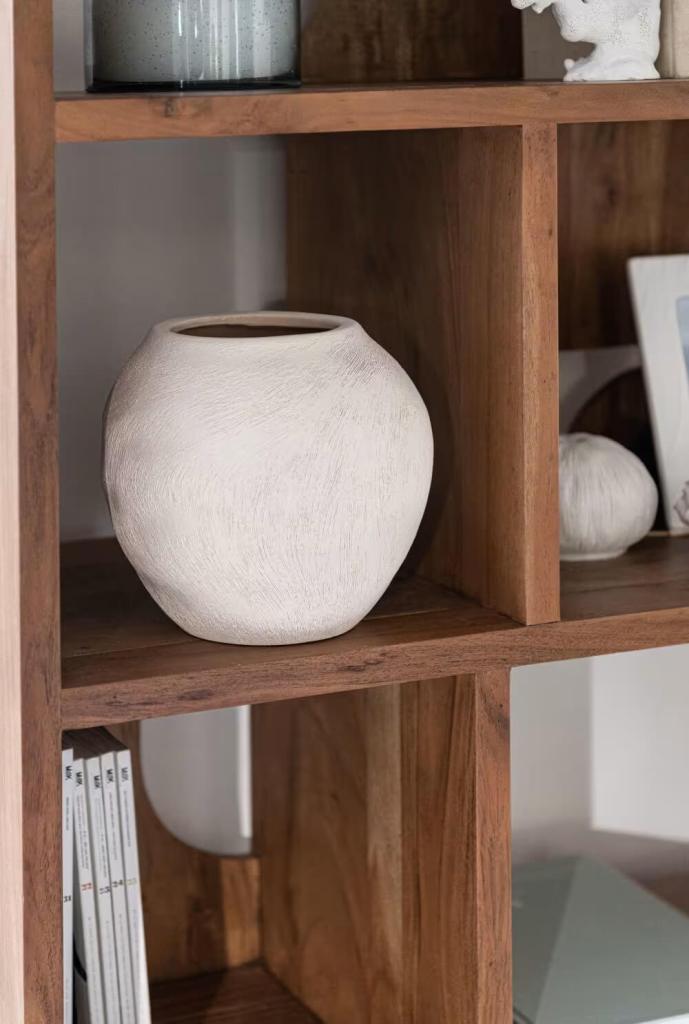 Este macetero de cerámica tiene un estilo natural. Es de la firma de interiorismo Banak. En el exterior de pueden apreciar unas rugosidades que añaden textura. El tamaño es de 22 x 22 x 20 cm. El precio es de 18,12 euros.