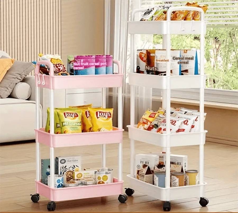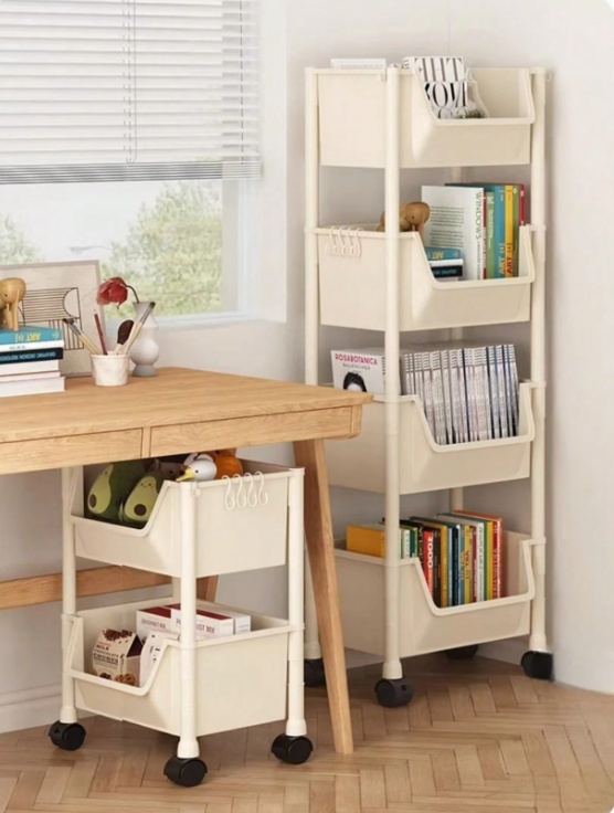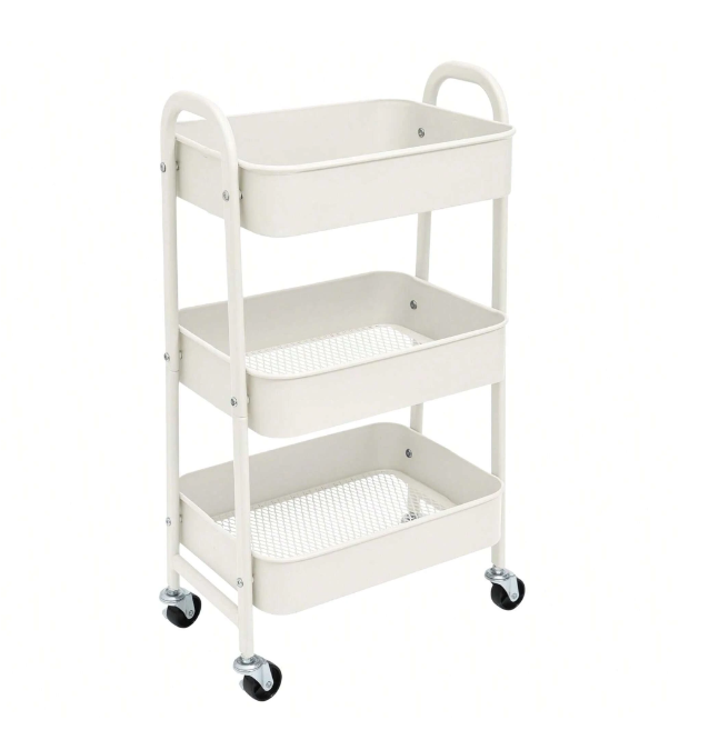 Este carrito de Shein es multifuncional porque se le puede dar cualquier uso. Está hecho a partir de plástico duro, con la opción de escoger los pisos que quieres poner en tu carrito. Puedes escoger entre el color blanco y rosa pastel. El precio es de 12,10 euros.