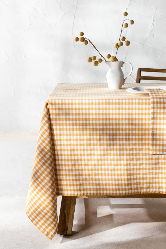 En la tienda online de Sklum parece que están comenzando con algunas rebajas del Black Friday. Puedes conseguir este mantel Elixe, hecho de algodón en colores mostaza y blanco, con un estampado de cuadros, por 18,95 euros. Las dimensiones son de 140 x 240 cm.