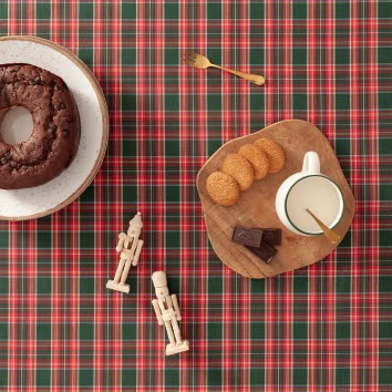 Con un toque mucho más navideño, Maisons du Monde tiene un mantel de algodón con Jacquard de cuadros verdes. Las dimensiones son más pequeñas que el resto de manteles, 140 x 100 cm. El precio es de 32 euros.