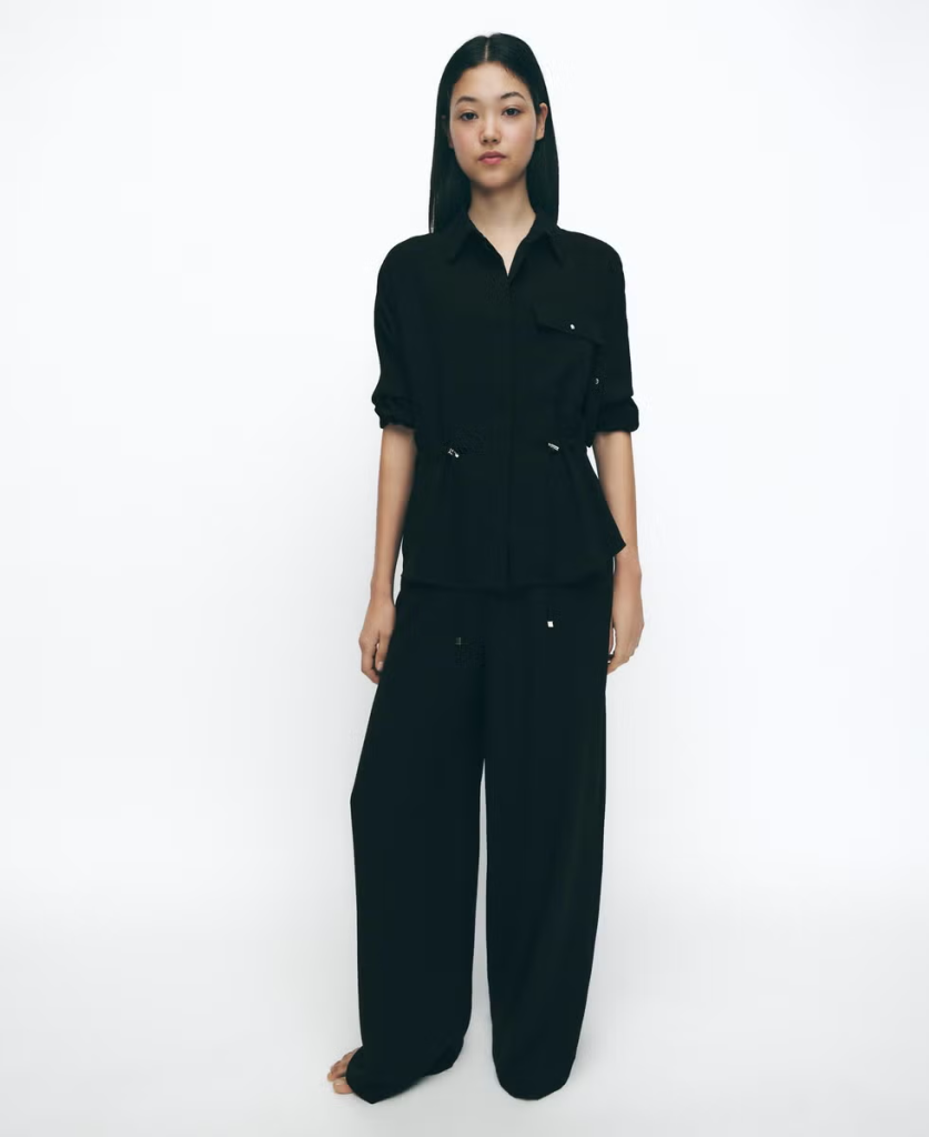 Una opción cómoda que sigue la tendencia safari chic. Su combinación de pantalón recto con blusa holgada lo convierte en un imprescindible para quienes buscan un look desenfadado sin perder elegancia. Perfecto para llevar con zapatillas blancas durante el día o con sandalias de tacón por la noche. Cómpralo aquí.