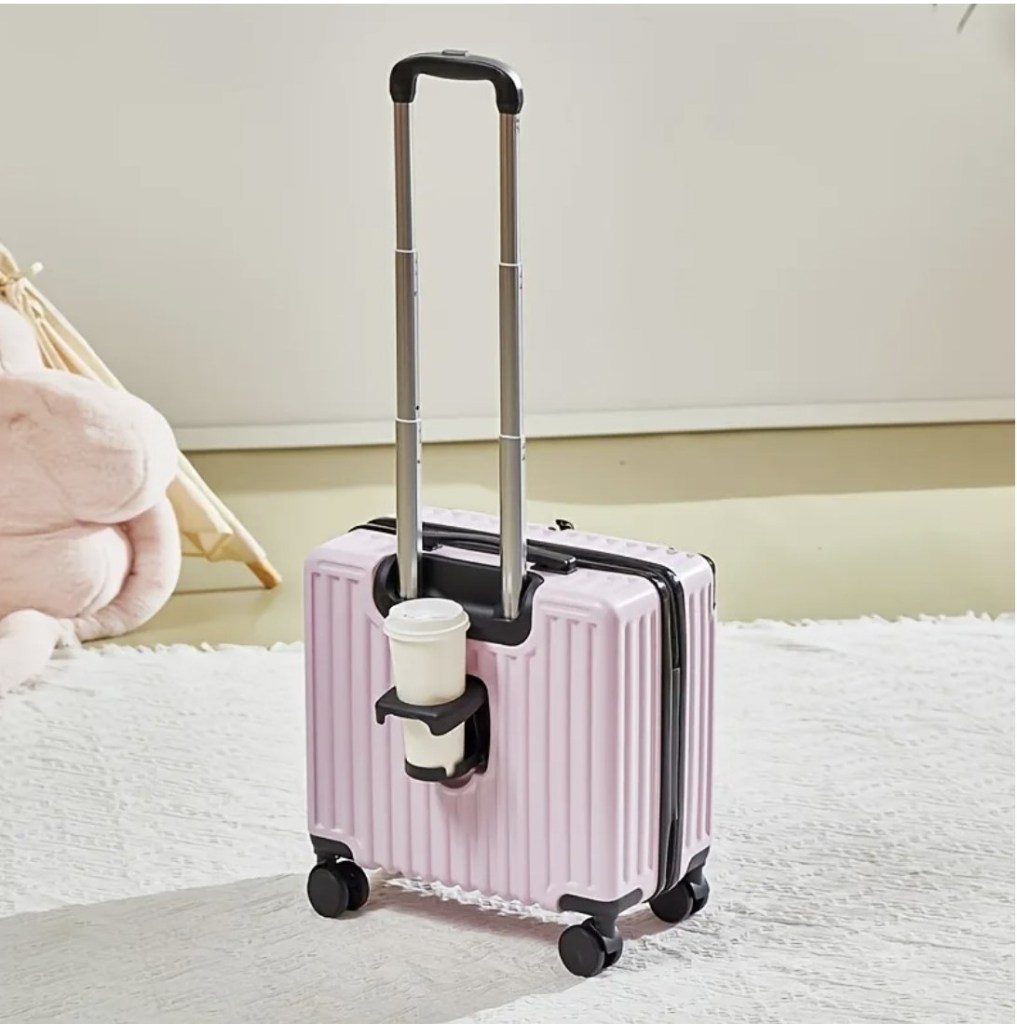 Además de esta que compagina orden, funcionalidad y cumple con las restricciones actuales, hay alguna que otra alternativa con la que poder viajar cómoda con todo lo que necesites. Esta maleta de mano de Temu en color rosa es ligera, con una carcasa dura con cuatro ruedas giratorias y cerradura TSA. Tiene un asa telescópica y puedes elegir entre varios colores: rojo, rosa, azul y negra. El precio es de 27,80 euros.