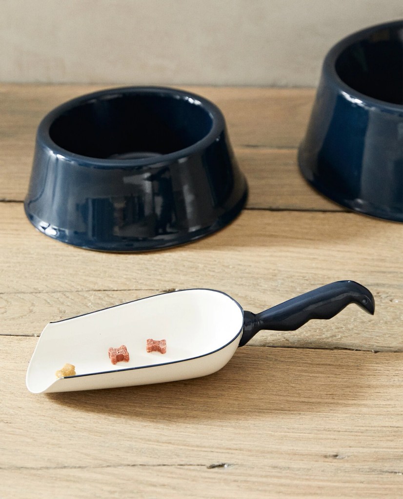 Además, a tus mascotas les encantará comer en estos recipientes tan molones. Los cuencos para su comida tienen diferentes tamaños y están hechos de cerámica. Los puedes encontrar en la web en un precio de entre 15,99 y 19,99 euros. Han añadido al conjunto de los bols, una pala para racionar bien la dosis de comida a tu amigo peludo que es de hierro esmaltado y va equipada con un mango ergonómico. La encuentras a un precio de 15,99 euros.