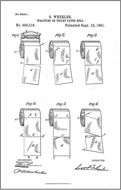 A su vez, Seth Wheeler, considerado como el padre fundador del papel higiénico en Estados Unidos aclaró de forma indirecta en una patente publicada en 1891 que la forma correcta de poner este accesorio en el portarrollos era por encima. "Mi invento consiste en un rollo de papel para envolver o para uso higiénico construido de manera que los puntos de unión y separación entre las hojas estén alternativamente en líneas paralelas que recorran todo el cuerpo de las hojas, de modo que al tirar del extremo libre de la red no se transmitirá en línea directa a través de una serie de hojas, sino que será desviada por los espacios opuestos a los puntos de conexión de la hoja tirada, produciendo así una tensión transversal sobre la siguiente línea de puntos de conexión suficiente para romper a ellos".