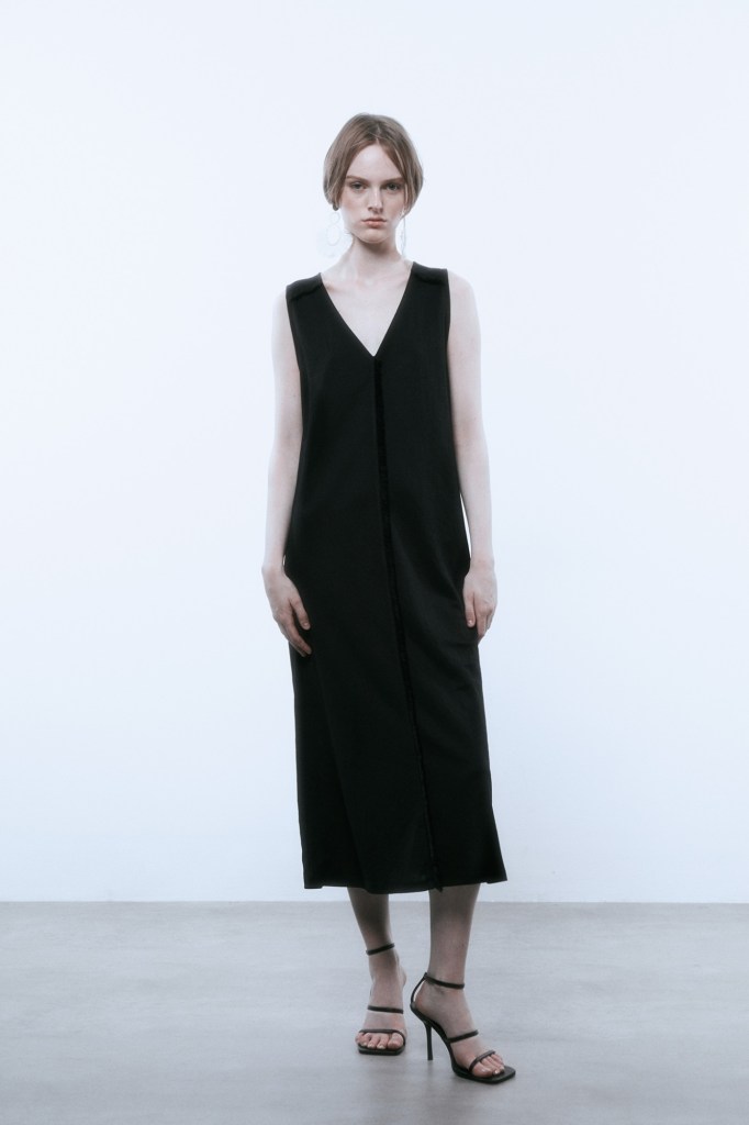 Un vestido negro es una opción básica de fondo de armario para toda mujer, pero en este caso este modelo de la nueva colección de Sfera es perfecto para las mujeres de +50. Tiene una silueta recta y cómoda al no ser ajustada, cuello de pico elegante y un largo midi sofisticado. Además, tiene detalles de flecos en la zona del pecho. Es el único que cuesta más de 20 euros, pero su precio merece la pena (23,99 euros).