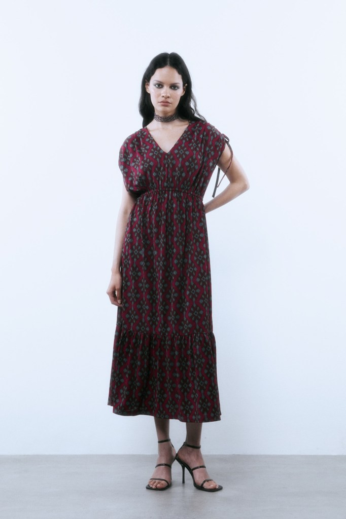 Y por último, otro vestido de la nueva colección de Sfera perfecto para esas mujeres de +50 que les gusten los estampados más llamativos. Se trata de una pieza en tonos granate y verdes que forman un estampado psicodélico perfecto para los días de otoño venideros. En este caso, cuenta con un corte debajo del pecho y un detalle de lazos en las mangas (19,99 euros).