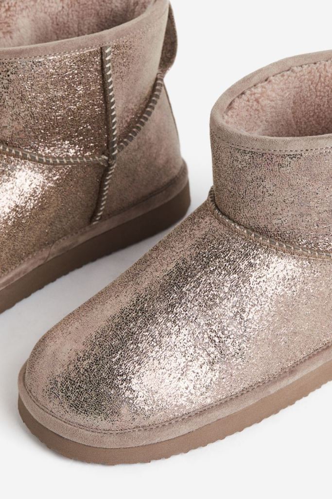 Aunque si tuviéramos que decir cuál es nuestro modelo favorito de estas botas con forro cálido que propone H&M diríamos, sin duda, estas en color bronce. Cierto es que la raíz inicial de esta tendencia de botas comfy fueron las que se colorean en camel, como la anterior. Pero este 2023 hemos venido a jugar y los tonos metalizados son súper trendy.