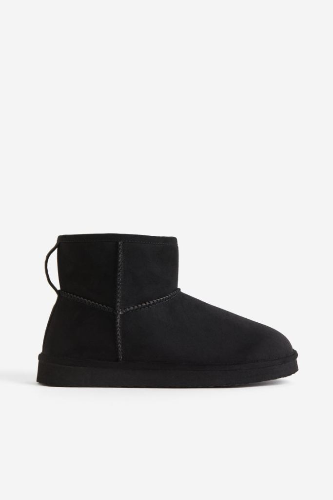Pero, por supuesto, para las que prefieran calzado en tonos básicos y convencionales, estas botas con forro cálido también están en negro. Son igual que las dos anteriores de H&M: costuras decorativas, trabilla detrás y caña baja. También tienen forro y plantillas en tejido suave efecto pelo para mantener los pies abrigados y una de la suela dos centímetros.