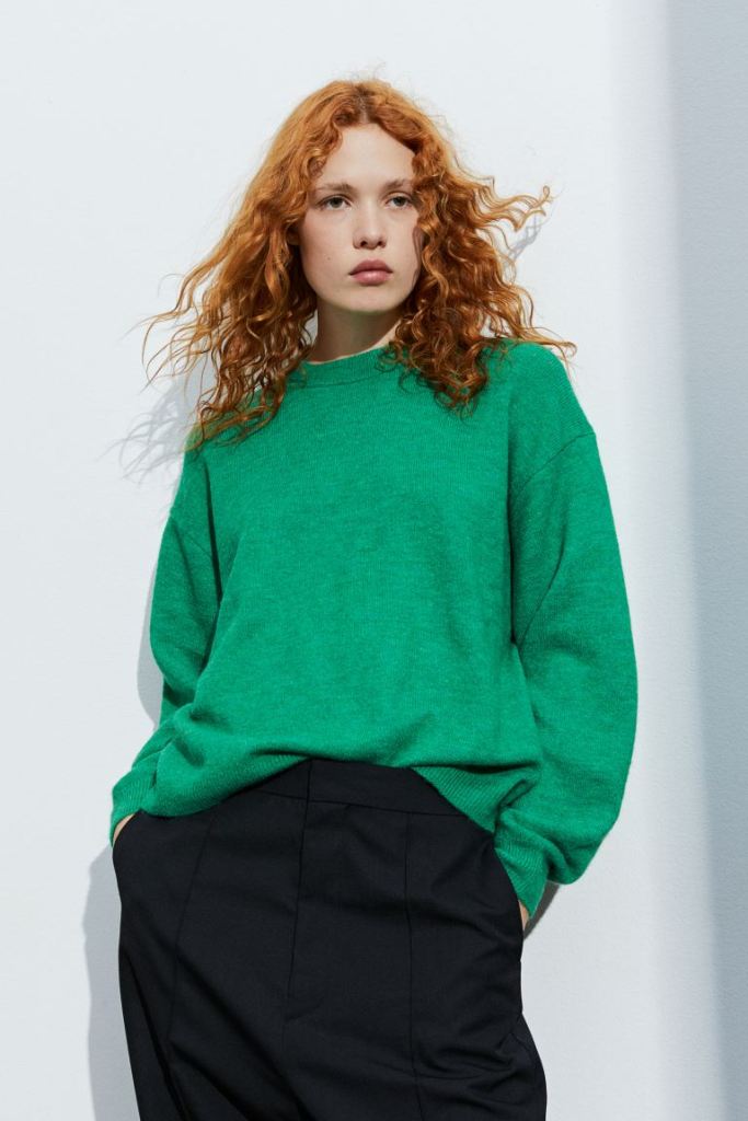 Y para terminar, las mujeres +50 más atrevidas arriesgarán en los meses de frío con jerséis como este modelo de H&M con un color verde llamativo y súper en tendencia. Además de ir cómoda y calentita con él por su punto suave y su silueta ancha, es ideal para ser el protagonista de looks neutros con faldas o pantalones negros. Y, por supuesto, también está tirado de precio (19,99 euros).