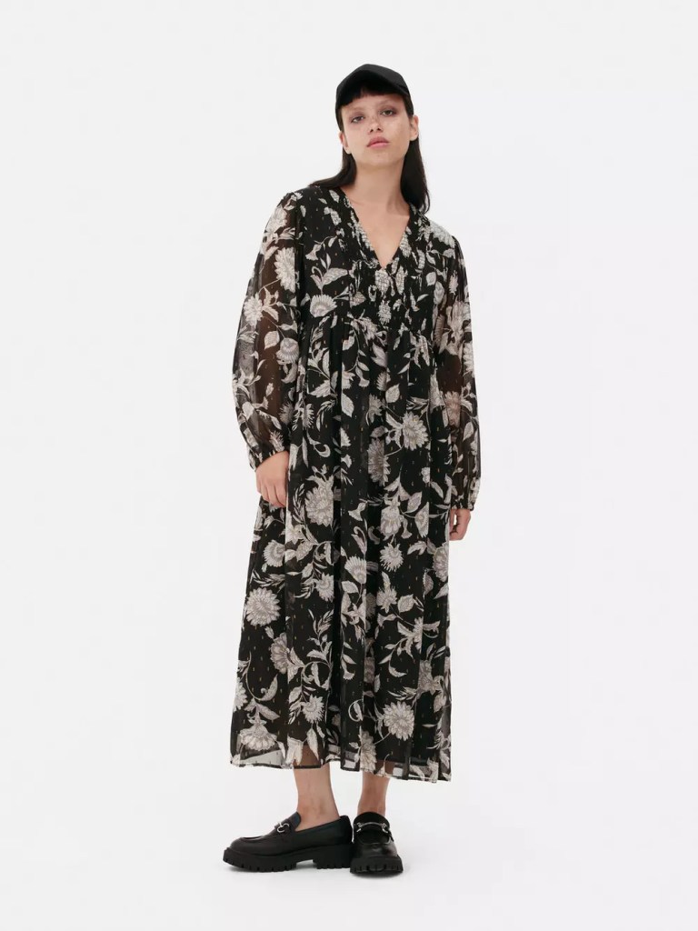 Empezamos con un clásico: un vestido de flores de Primark que cuenta con un corte holgado y súper cómodo para el día a día. Al ser blanco y negro, es una opción perfecta para llevar con mocasines a la oficina, y para lucir de noche con botines. Además de estilizar y de ser súper versátil, este modelo está tirado de precio (20 euros).