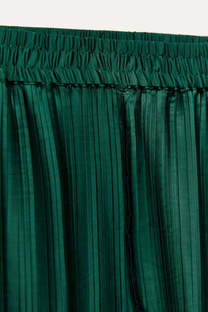 Como ves en esta imagen, no solo está disponible en negro este pantalón plisado de Zara: también lo está en este verde esmeralda ideal para lucirlo esta Navidad. Y como también te habrás percatado, esta pieza cuenta con una blusa con la que hacer un total look súper sofisticado, cómodo y que estiliza. Se trata de una camisa también plisada de cuello redondo y manga sisa que también cuenta con descuento (29,95 euros 15,99 euros).
