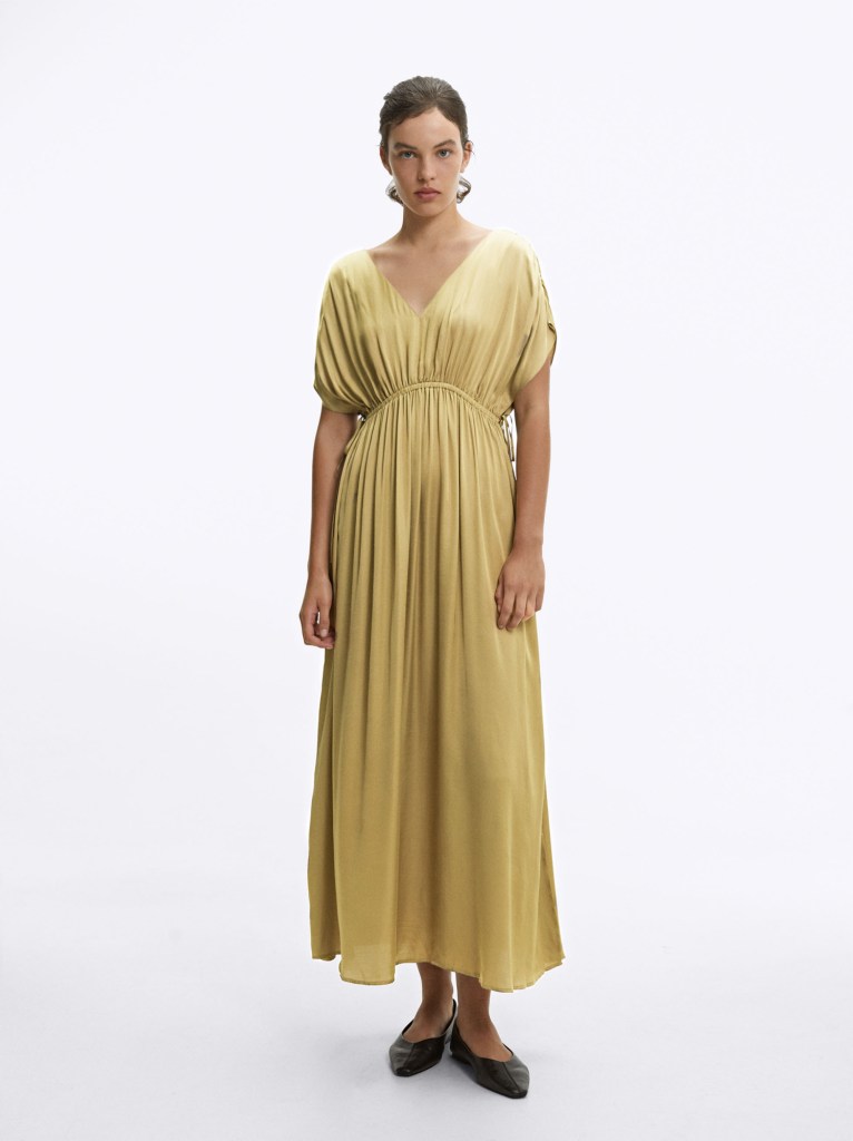 El estilo no está reñido con la comodidad incluso en los eventos de Navidad, y la prueba es este vestido sueltecito de Parfois. ¿La razón? Tiene una silueta súper fluida y holgada que aporta comodidad, pero a su vez su tejido es dorado y le da ese toque de glamour y sofisticación que buscamos en estas fechas. Es un vestido que nos retrotrae a las túnicas que llevaban en la Antigua Grecia con esos drapeados y esa caída. Así que, sin duda, con unos taconazos y un abrigo negro puede ser una pieza muy especial para estas fechas (49,99 euros).