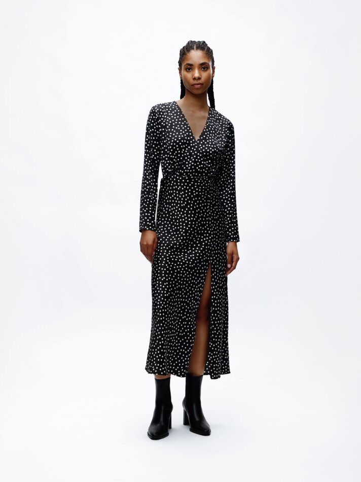 Lefties también ha sucumbido a la fiebre de los lunares y lanza este vestido sueltecito que, apostamos, es uno de los favoritos de las mujeres +50. Al ser tu tejido de topos fluido y ligero, resulta súper cómodo, pero a su vez viste mucho. Además, cuenta con cuello en pico y una abertura en el bajo de la prenda. Por ejemplo, lo puedes lucir con unos mocasines para la oficina y con unos botines de tacón para un evento. Una vez, se trata de un vestido más que asequible (19,99 euros).
