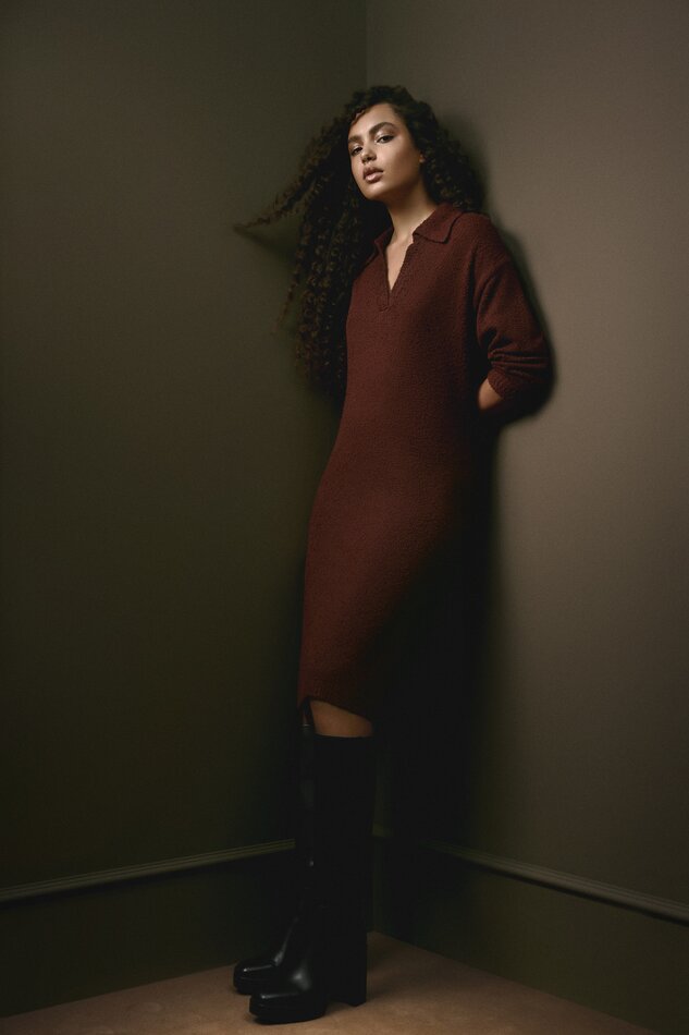 Pero si buscas la comodidad total este invierno, nada mejor que un vestido sueltecito de punto. Si huyes de los estampados de rayas como el que te hemos presentado primero, estamos seguras de que este modelo de Lefties te encantará. Se trata de un cómodo vestido de punto holgado que cuenta con un color burdeos que pega tanto con tonos negros como con grises o beiges. Es ideal para tener confort en la oficina con zapatillas, o para lucirlo con botas altas de tacón en eventos. En este caso, cuesta 22,99 euros.