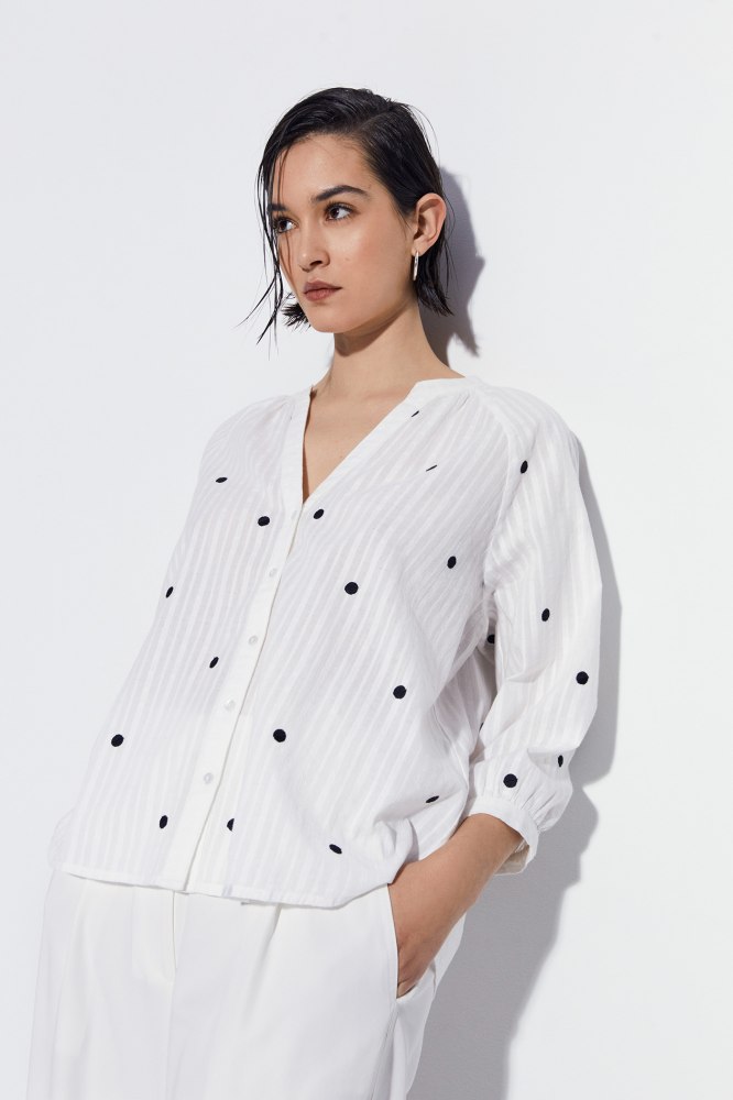 Camisas de lunares de Sfera que triunfan para primavera 2024: con cuello pico