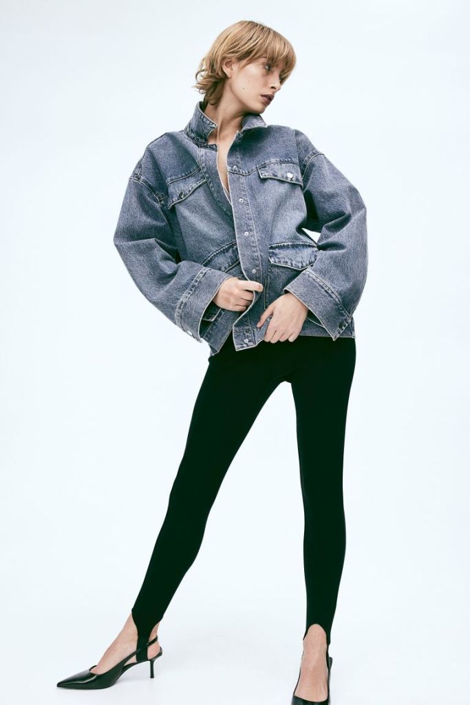 Por supuesto que veremos chaquetas tejanas como la típica chaqueta vaquera que nunca pasa de moda. Pero H&M va más allá y propone para primavera modelos mucho más modernos, como algunas tipo gabardinas o esta chaqueta camisera en denim y súper amplia. Como se aprecia, es un modelo de corte holgado con hombros caídos, bolsillos delanteros de parche con solapa e incluso unas magas XL que son súper cómodas. Esta se puede llevar cerrada o abierta sobre camisas o camisetas (39,99 euros).