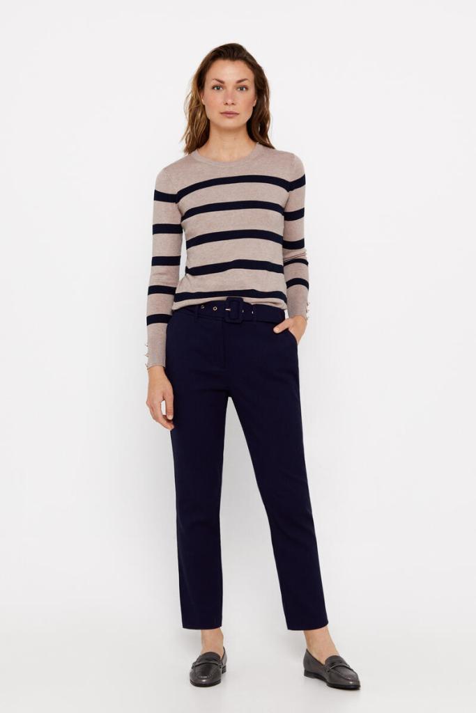 Olvídate de los incómodos pantalones; hemos encontrado la elección perfecta para todos tus días, permitiéndote sentirte cómoda y elegante. Este sofisticado pantalón de vestir en azul marino, que incluye un cinturón, es la solución ideal. Con su diseño clásico y atemporal, esta prenda se convierte en una opción versátil tanto para ocasiones formales como para looks de oficina. Este artículo, originalmente valorado en 49,99 euros, ahora está disponible por solo 14,99 euros.