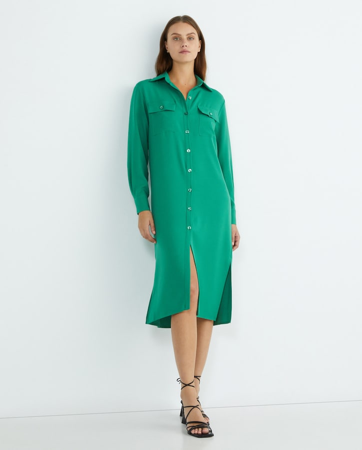 Sin duda, la silueta de vestido que más estiliza y que más cómoda es a su vez es la camisera. Es decir, es como si lleváramos una camisa pero con largo mini o midi. Entre las mujeres +50 triunfa el largo hasta la rodilla, presente en esta pieza de Zermatt para El Corte Inglés. Como ves, no se ajusta nada al cuerpo y resulta elegante por su botonadura y cuello. Su color verde es ideal para darle alegría y buen rollo a la primavera, y es que este es apto para lucirse incluso en eventos. ¿Lo mejor? Su precio, pues gracias a su descuento del 60% pasa de costar casi 46 euros a menos de 20 (45,90 euros 18,36 euros).