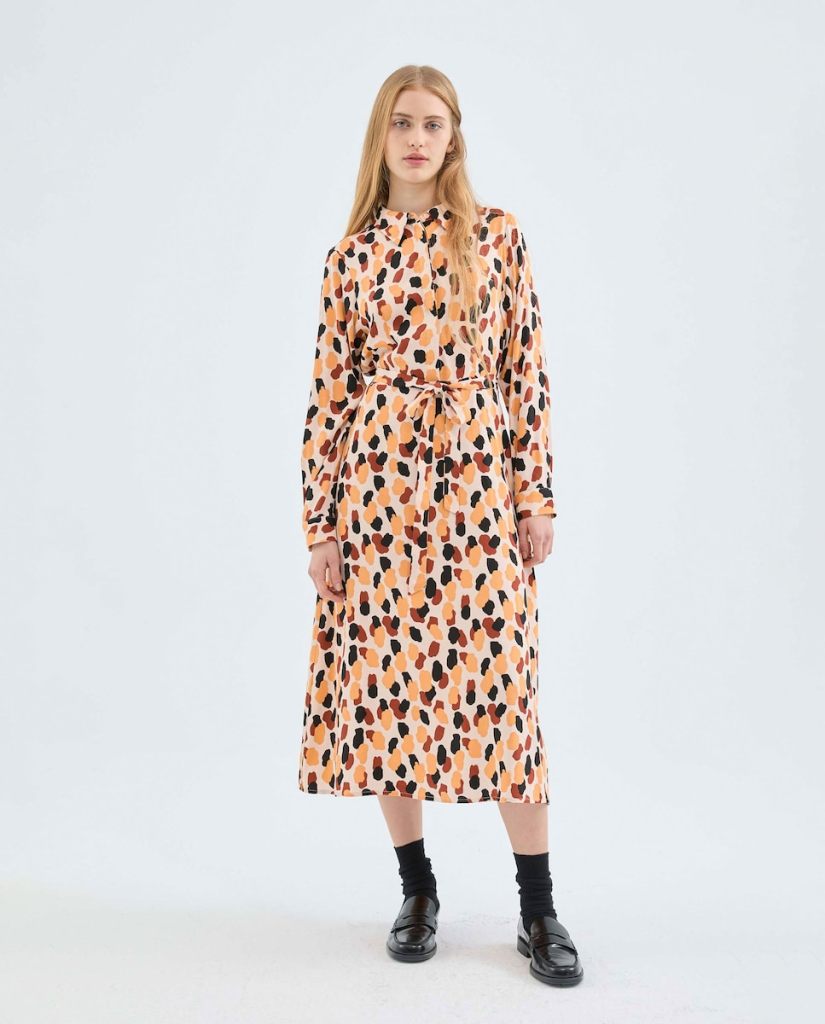 Por el contrario, si eres de esas que busca vestidos con muchísimos colores o estampados llamativos, este modelo aúna estas dos características. Es de Compañía Fantástica, y se puede encontrar ahora con un descuentazo del 71% en El Corte Inglés, que hace que pase de costar casi 70 euros a menos de 20 (69,95 euros 19,99 euros). Como se aprecia en la imagen, cuenta con un print de manchas o lunares gruesos, y una silueta camisera que lo hace cómodo y favorecedor al no ajustarse nada. Aunque, de nuevo, cuenta con un cinturón a juego para marcar la cintura.