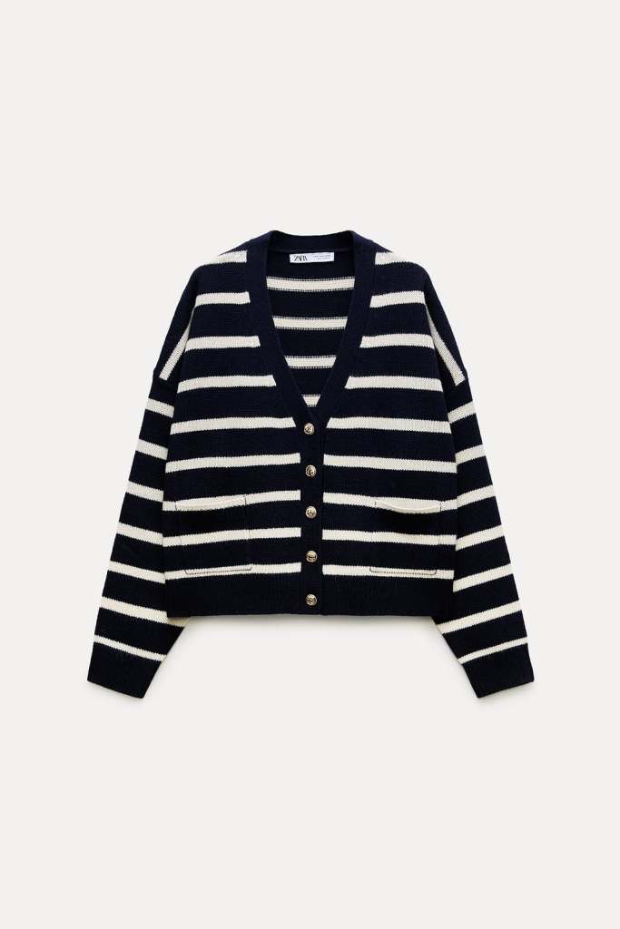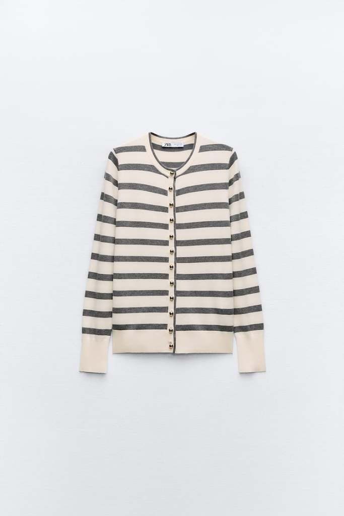 Y como opción más desenfadada, este cárdigan de rayas de Zara con un efecto asimétrico en su combinación de colores beis y negro. Estamos seguras de que también será objeto de deseo entre las mujeres +50 porque es el más holgado de todas las propuestas de la firma, algo que lo hace una prenda aún más confortable. En este caso, sí que es una prenda de punto que se ha agotado literalmente en web, pero que seguro pronto vuelven a sacar para lucir esta tendencia en primavera (29,95 euros).