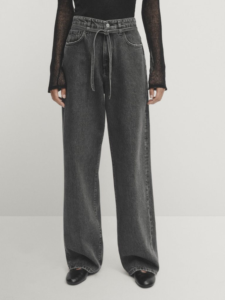 Vaqueros de pierna ancha, tiro alto, detalle lazo y diseño de cinco bolsillos, de Massimo Dutti (59,95 euros).
