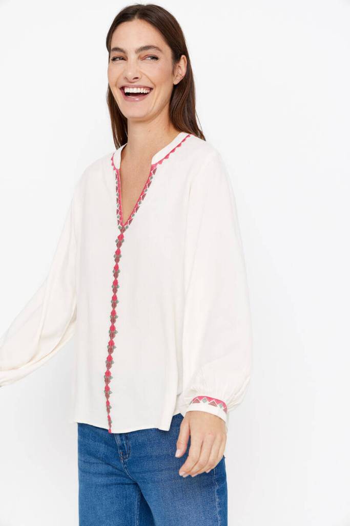 Aunque si hablamos de comodidad, no podíamos no traer esta camisa fluida de la nueva colección de Cortefiel. Es súper holgada, así que no es de extrañar que guste a las mujeres +50. Aunque es blanca, cuenta con un detalle de bordado a contraste en escote y puño que le aporta un toque diferenciador. Y de nuevo cuenta con un favorecedor escote pico y manga abullonada acabada en puño. En este caso, es bastante asequible para ser la reina de los looks más primaverales (39,99 euros).