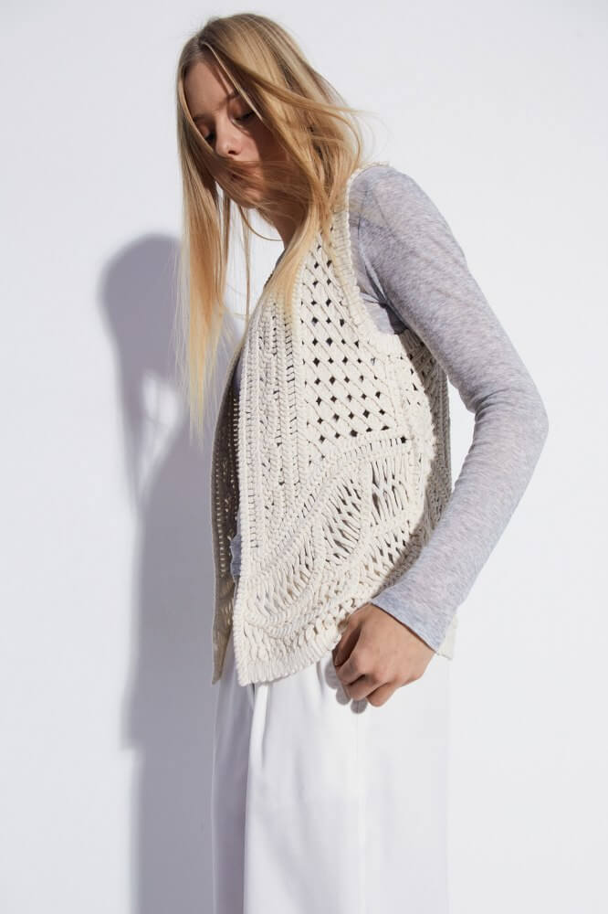 Otra forma de llevar punto es de esta forma. Se trata de un chaleco largo hecho con 100% algodón -29,99 euros- y tiene un bordado preciosos para combinar con estilos informales.