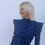 Se trata del modelo Terpsicore, un vestido largo con estampado de lunares negros en terciopelo y fondo en color marino. Tiene varios detalles que enamoran a simple vista, como por ejemplo la abertura al lateral, el cuello perkins siempre tan sofisticado, el plisado frontal, y los botones laterales. Una mezcla de elegancia y comodidad que no pasa desapercibida y se convierte en la opción perfecta para las invitadas de la temporada.